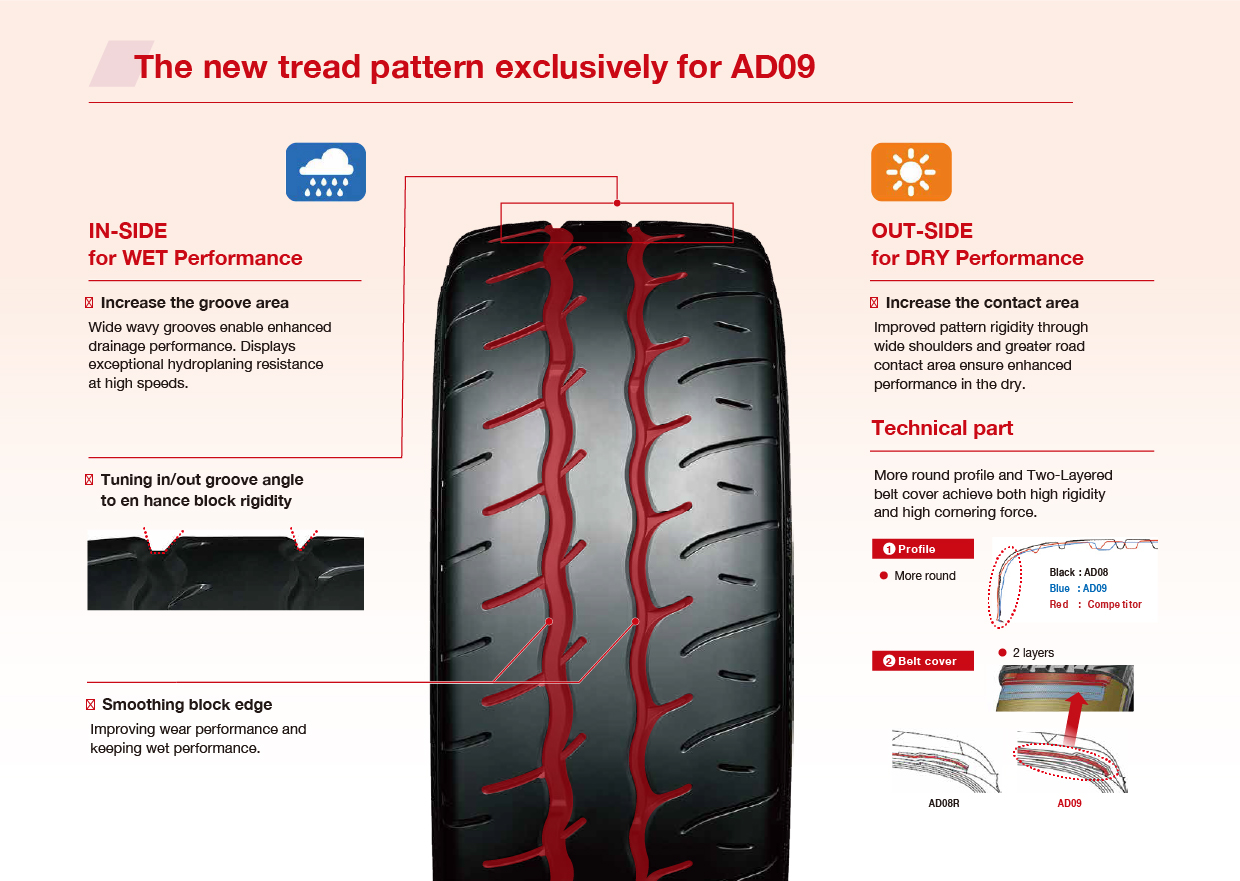 IA special tooling process in the molds combined with the YOKOHAMA groupʼ s unique expertise has led to the development of stylish dark design.